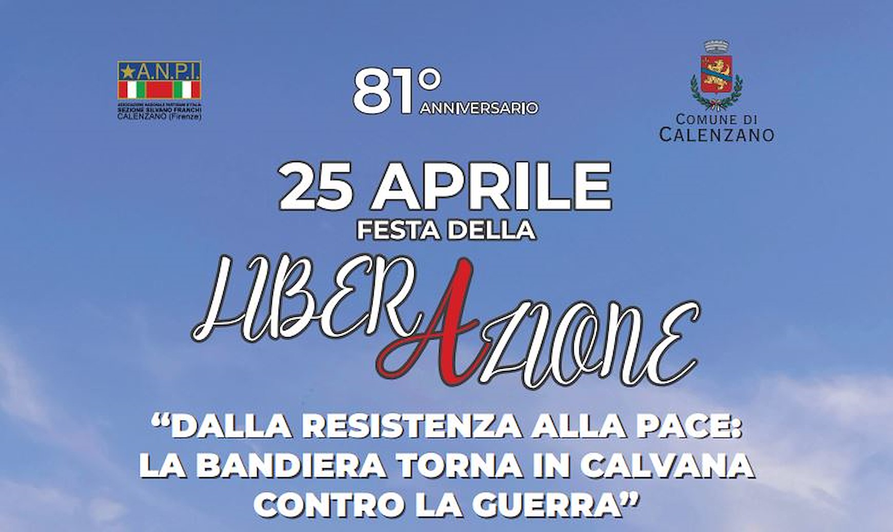 Il 25 Aprile, per l'81esimo anniversario della Liberazione, il 25 aprile sarà distesa la grande bandiera della pace in Calvana. L'iniziativa "Dalla Resistenza alla pace: la bandiera torna in Calvana contro la guerra", è promossa dal Comune di Calenzano con l’adesione di Città Metropolitana di Firenze, i Comuni di Campi Bisenzio, Sesto Fiorentino, Barberino di Mugello, Cantagallo, Vaglia, Vaiano e Vernio. La manifestazione ha il patrocinio della Regione Toscana.