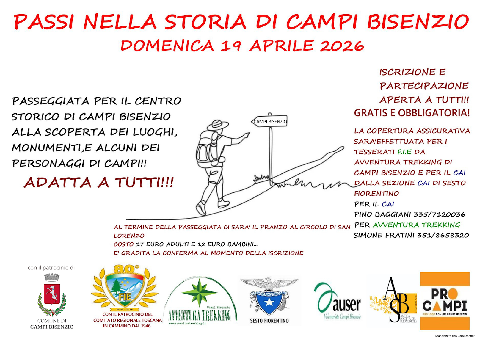 L’iniziativa nasce dalla collaborazione tra Avventura Trekking e CAI Sesto Fiorentino con il patrocinio del Comune di Campi Bisenzio e del Comitato Regionale Toscano F.I.E. ed in collaborazione di Auser Campi Bisenzio, e Antica Società del Buon Umore.