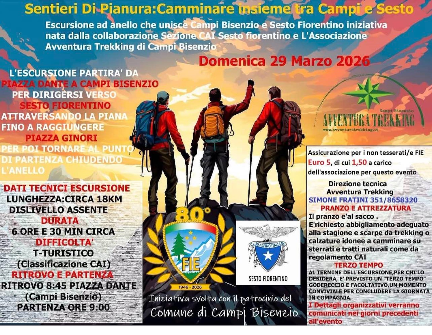 L’iniziativa nasce dalla collaborazione tra la Sezione CAI di Sesto Fiorentino e l’Associazione Avventura Trekking di Campi Bisenzio, con il coinvolgimento delle realtà locali. Un’occasione per camminare insieme e conoscere meglio il territorio.