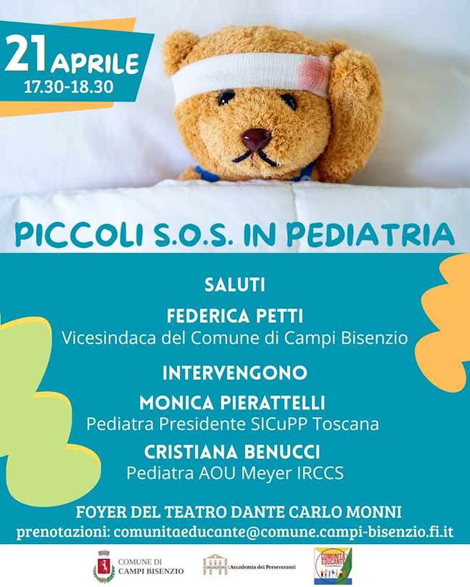 Martedì 21 aprile al foyer del teatro Dante dalle 17.30 alle 18.30 la dottoressa Pierattelli e la dottoressa Benucci terranno un incontro sulla gestione dei piccoli incidenti che possono capitare ai bambini e alle bambine.