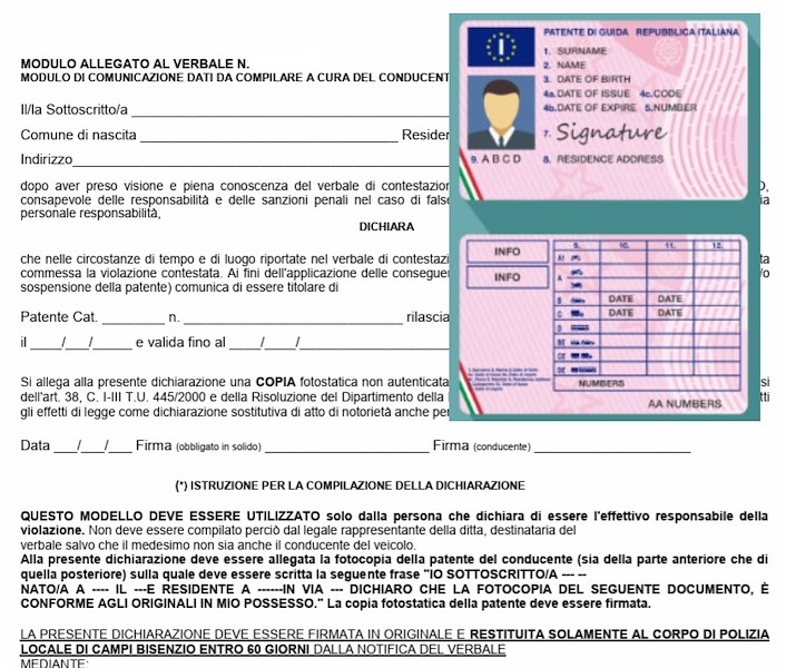 Nuove modalità di presentazione della Comunicazione Dati del Conducente in riferimento a Verbale C.D.S.