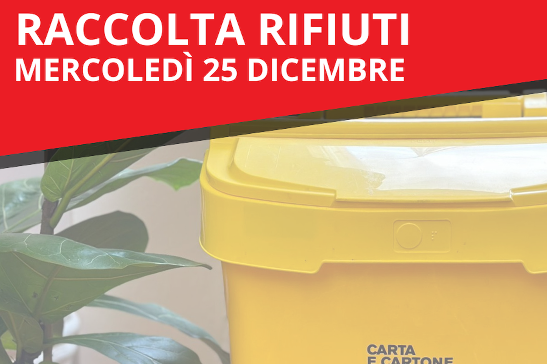 Si comunica ai cittadini che MERCOLEDì 25 DICEMBRE E 1° GENNAIO, Alia 𝐧𝐨𝐧 𝐞𝐟𝐟𝐞𝐭𝐭𝐮𝐞𝐫𝐚̀ la raccolta porta a porta della carta e cartone.