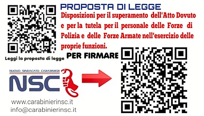 Raccolta firme Proposta di legge di iniziativa popolare - Disposizioni per il superamento dell'"Atto Dovuto" e per la tutela del personale delle Forze di Polizia e delle Forze Armate nell'esercizio delle proprie funzioni.