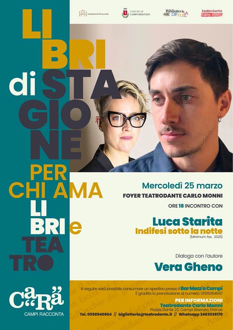 Cos'è? Al Foyer del Teatrodante Carlo Monni Luca Starita, in dialogo con la sociolinguista Vera Gheno, presenta il suo libro "Indifesi sotto la notte". Galleria di immagini